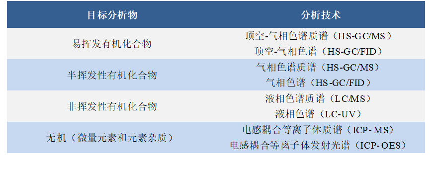 • 电感耦合等离子体质谱扫描(ICP- MS):微量元素和重金属(即无机元素杂质)