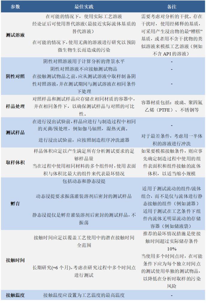 需要使用可靠、稳健的分析方法来检测浸出物。最佳实践指南的分析方法部分概述了在开发浸出研究时应考虑的关键分析方法。
