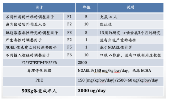 安全边际MOS=PDE/最高暴露量=3000(ug/天)/0.24(ug/天)=12500 >1