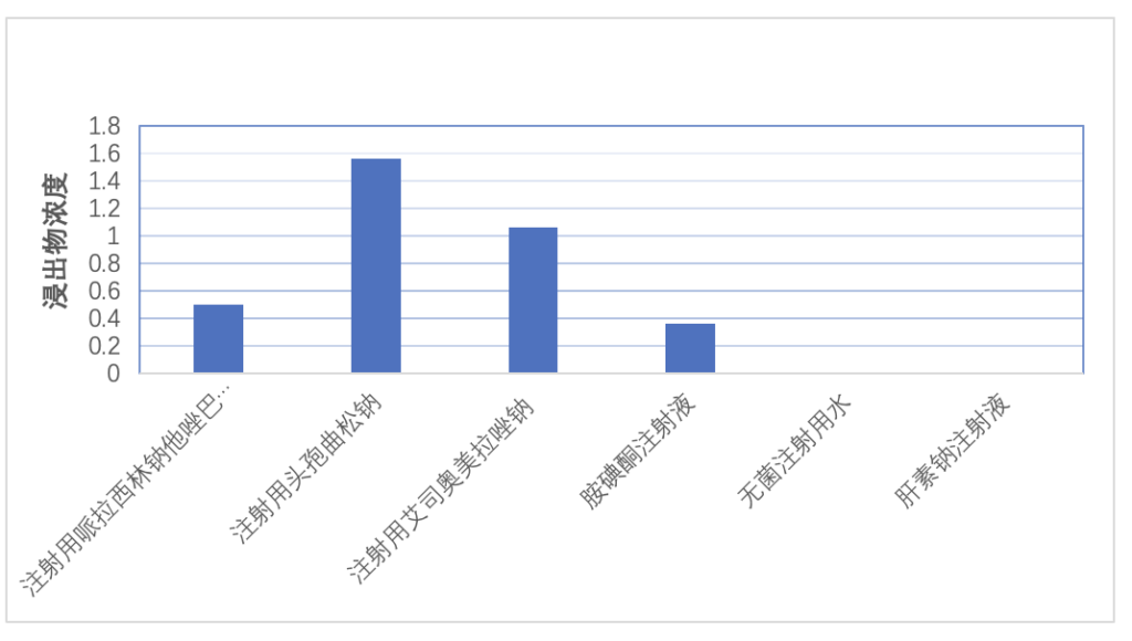 有研究报道,复溶的冻干制剂与给药系统在接触一段时间后,来自包装材料的浸出物浓度水平下降,甚至有的浸出物浓度会降低到无法检测。