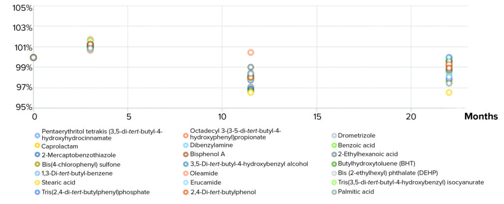 Figure 3: Stability test results of final extractables and leachables screening standard.