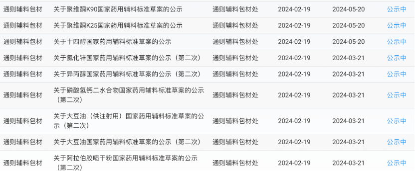 2月19号,国家药典委员会公示国家药用辅料标准草案