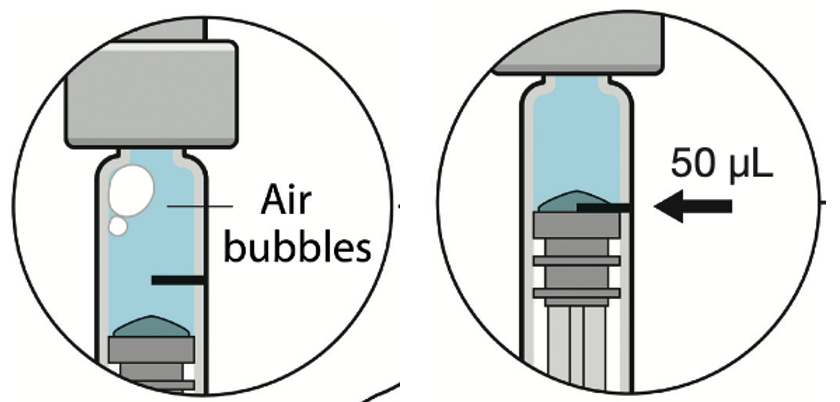 气泡粘附在注射器壁上,在注射器启动过程中难以排出,这会影响实际输送到眼睛中的药物量。