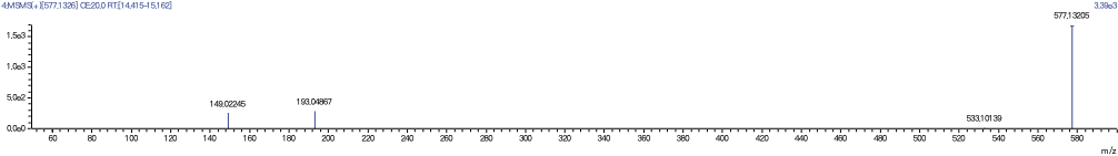 取相应保留时间下对应的一级质谱图,以确定目标化合物分子离子的准确质荷比。