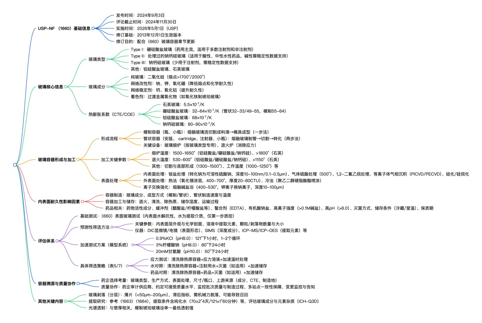 | 文档体系定位 | 聚焦药用玻璃容器内表面耐久性评估,涵盖成型、加工、测试全流程,是〈660〉(玻璃容器通用要求)的专项补充,核心解决玻璃脱层、颗粒脱落等质量风险 |