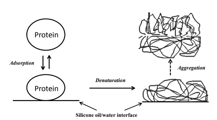 多项研究表明蛋白质的表面性质、界面性质和溶液条件都会影响其与硅油的亲和力和相互作用程度。